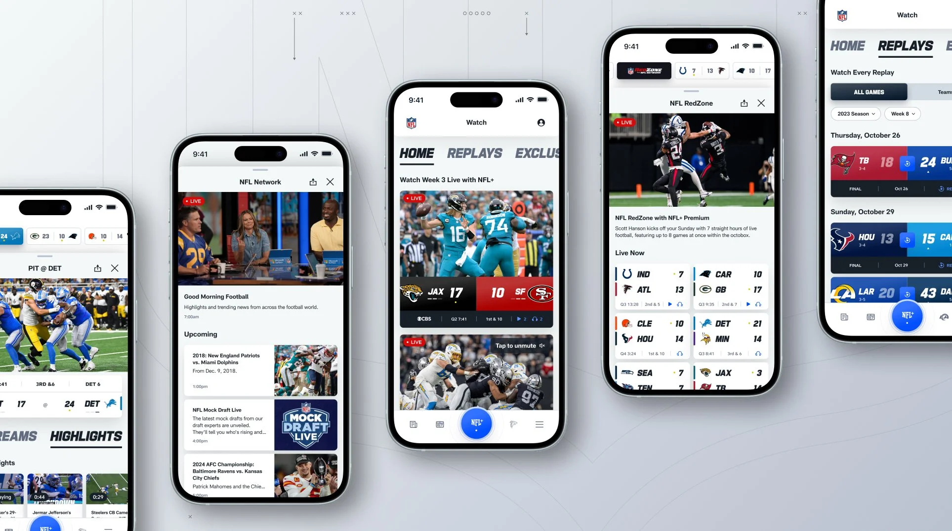 Starting in 2022 and launching for the 2024 season, I led a total redesign & rebuild of the league’s flagship digital property and primary destination for NFL+, modernizing the experience and introducing a new digital brand identity. The new app is oriented around a highly contextual and targeted hierarchy of content based on the time of week / time of day within the football week, with the Sunday live game experience being the center of the ecosystem.